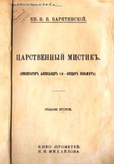В.В. Барятинскiй. Царственный мистикъ (Императоръ Александръ 1-й – Феодоръ Козьмичъ). Издание второе. Книжное товарищество «Прометей» Н.Н. Михайлова.